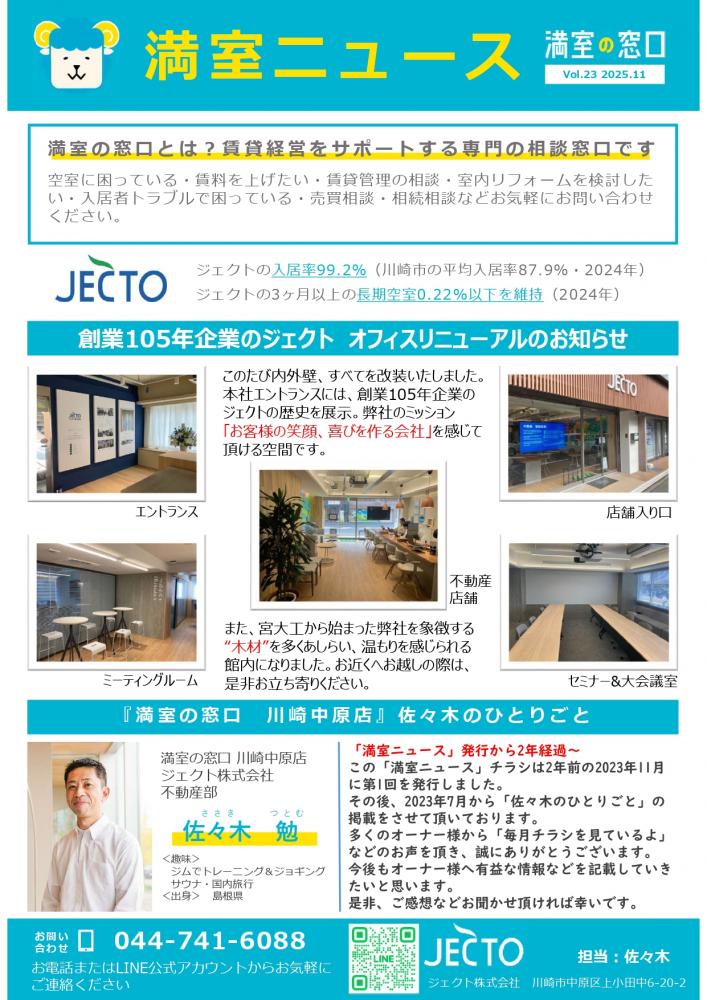 満室の窓口では満室ニュースを月1回発行しています。