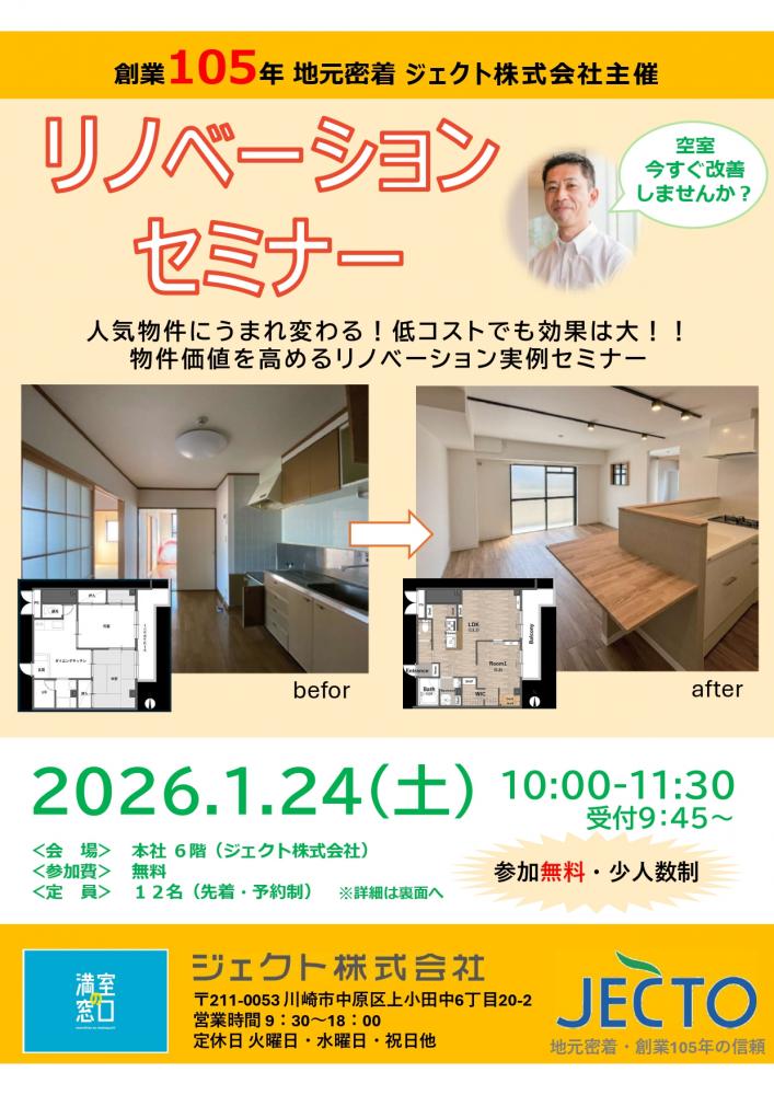 【満室の窓口】リノベーションセミナーを開催いたします