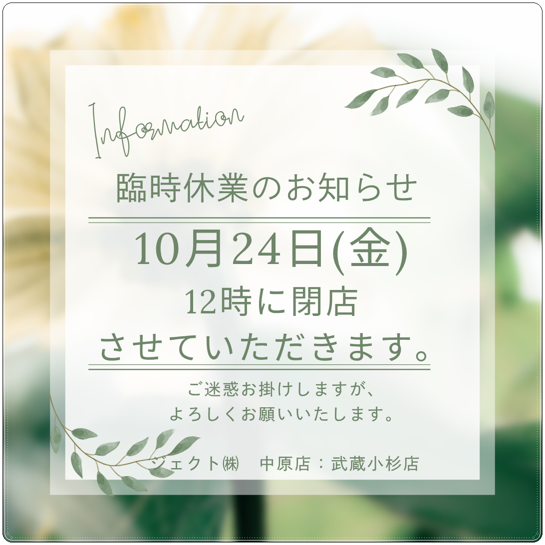 - ◆ 武蔵小杉店 臨時休業のお知らせ ◆