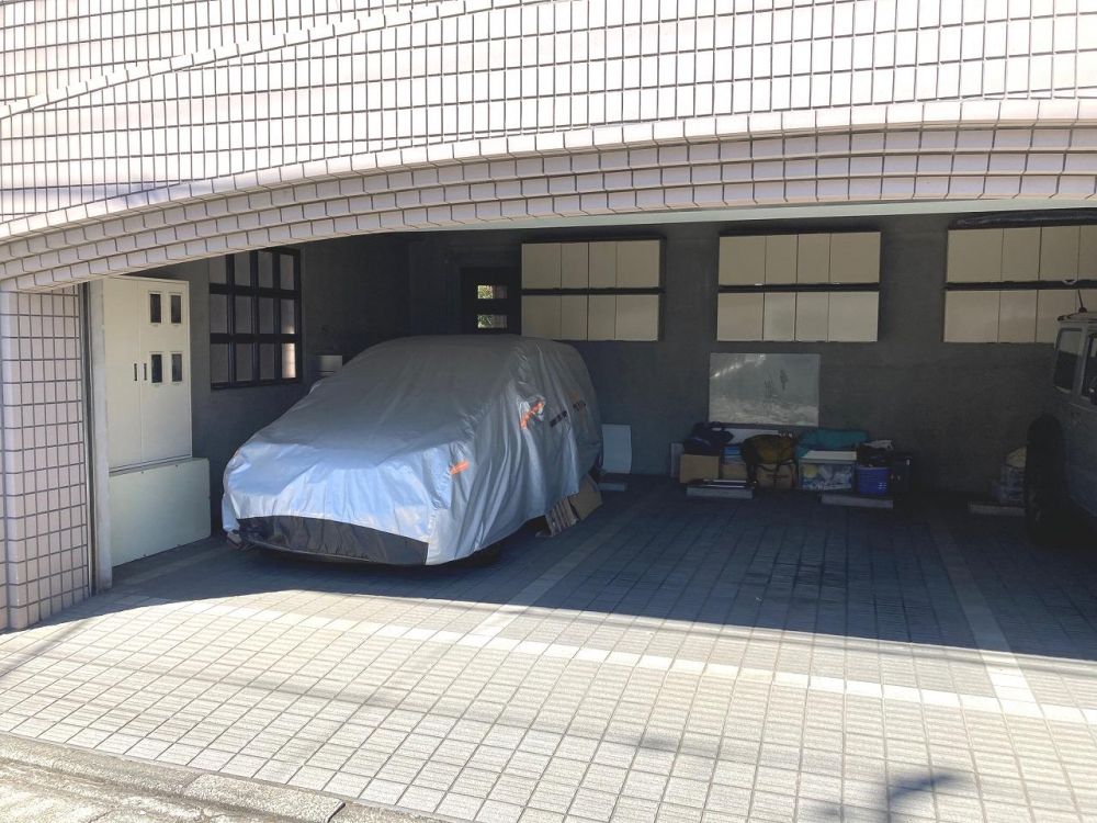 賃貸マンション「ノーブルアウドウパレス」の1階部分の駐車場。屋根付き・シャッター付きです。外部の方もご契約相談可。空き区画はお問い合わせ下さい。