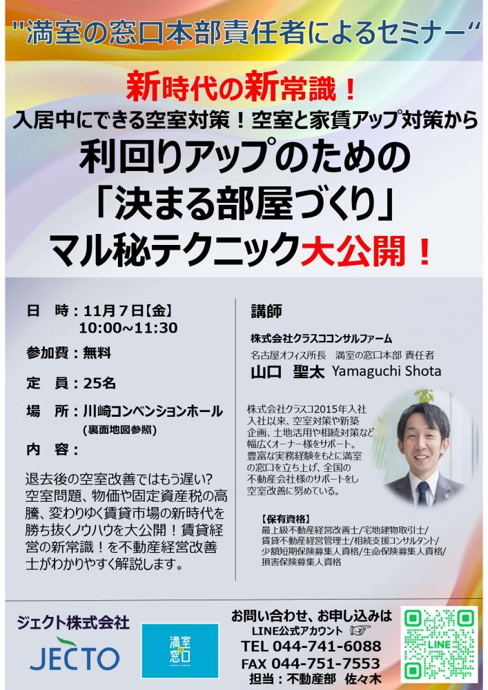 【満室の窓口】懇親会付きセミナー 開催致します