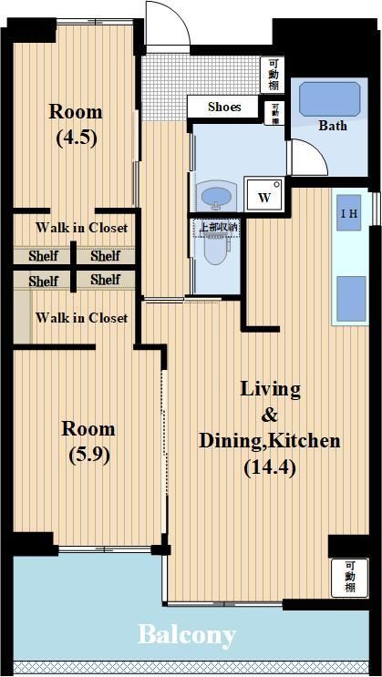 2LDK( LDK14.4畳(1階)/洋室5.9畳(1階)/洋室4.5畳(1階) ) |