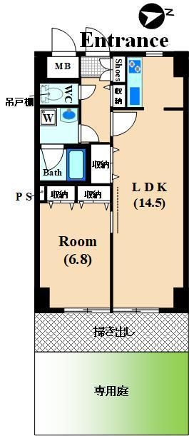 1LDK( LDK14.5畳(1階)/洋室6.8畳(1階) ) |