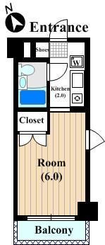 | 築年月 | 1995年4月 | 間取り | 1K( 洋室6畳/K2畳 ) | 専有面積 | 18.9m2 |
